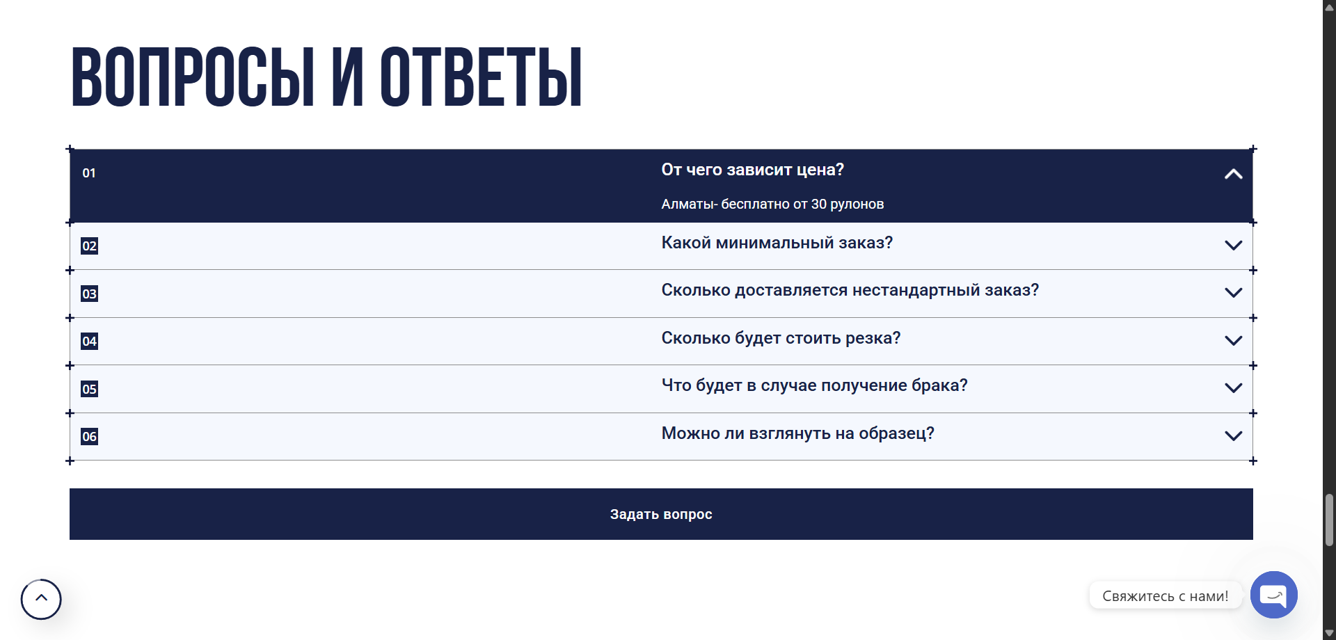 — CTA-блоки: запрос прайса, WhatsApp/контакты.