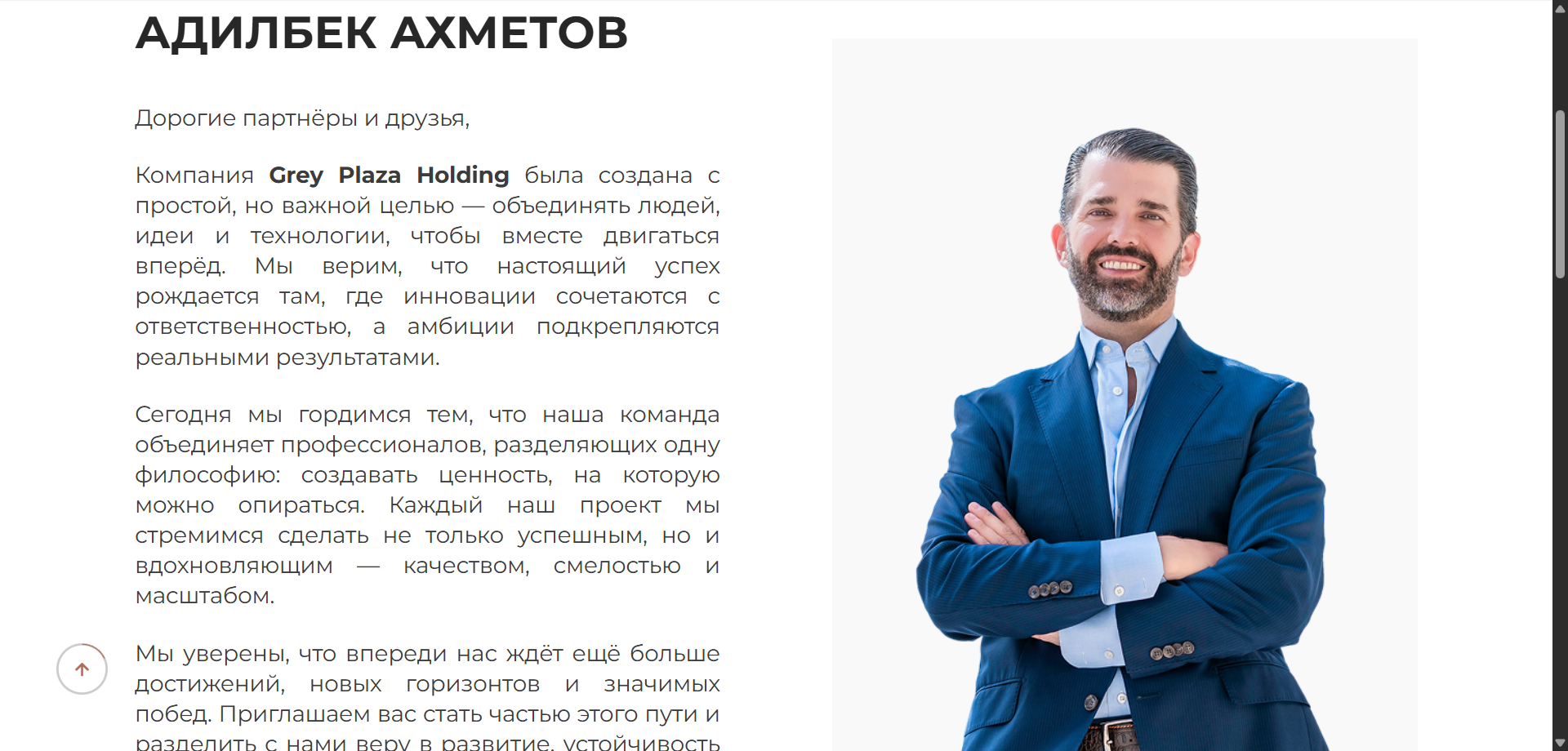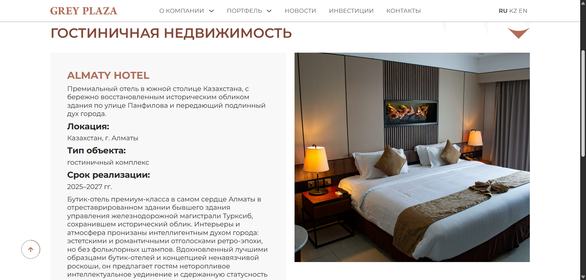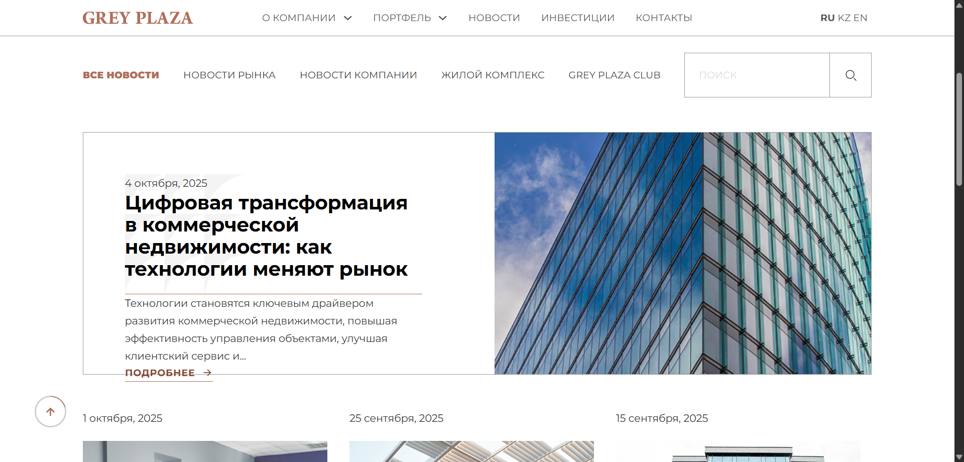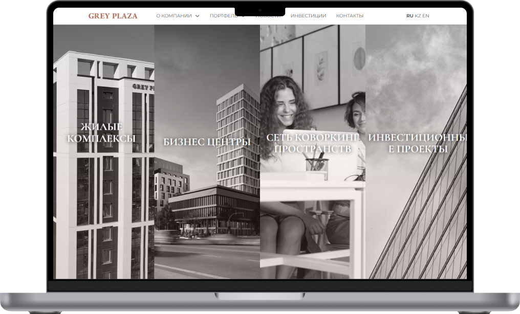 Создать современный имиджевый корпоративный сайт для Grey Plaza, который презентует компанию, её ценности и направления, показывает портфель объектов (жильё, бизнес-центры, коворкинги) и упрощает коммуникацию с потенциальными клиентами и инвесторами.