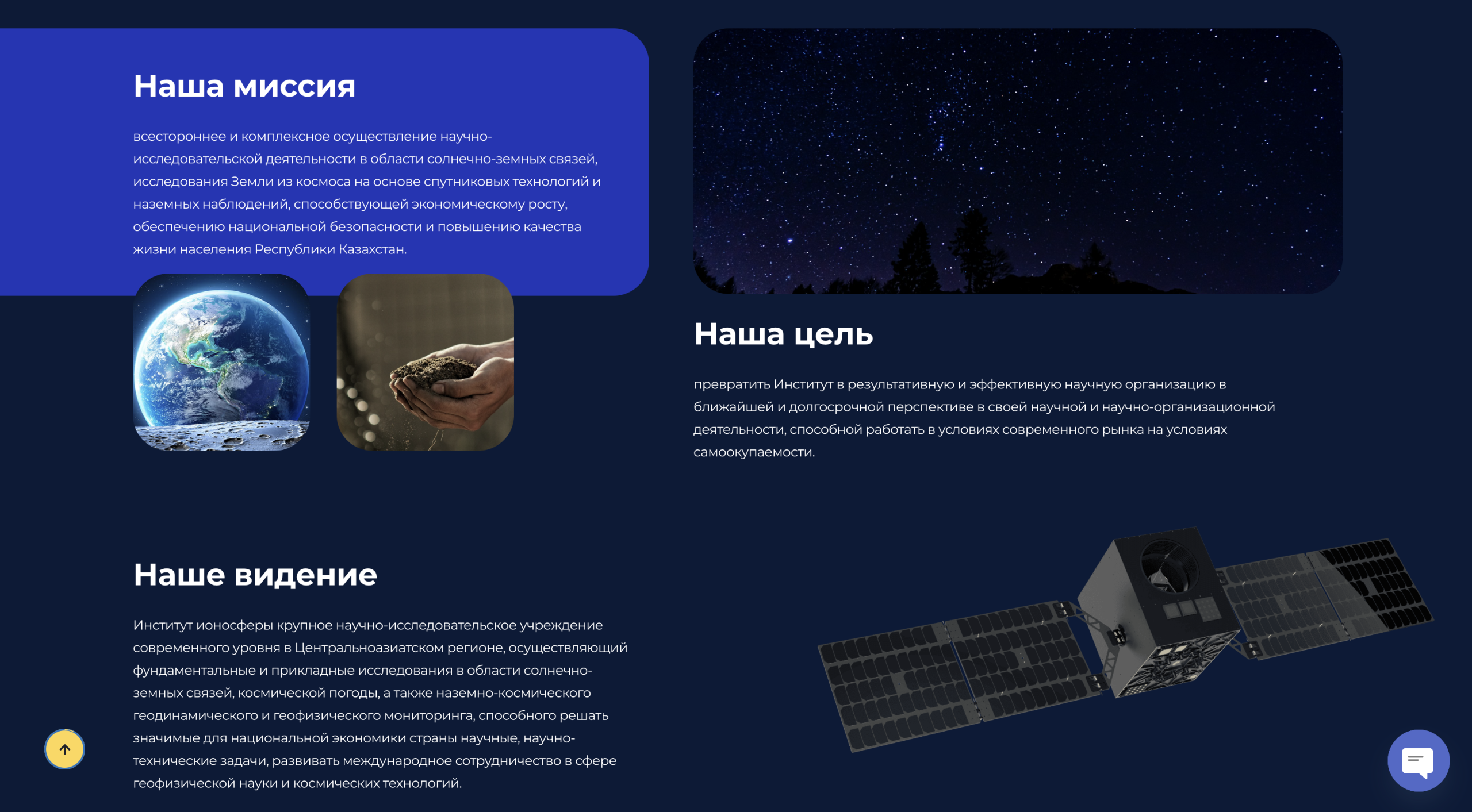 Создать динамичный сайт для Института ионосферы с мультиязычностью (казахский, русский, английский). Необходимо представить информацию о лабораториях, сотрудниках, проектах, а также предоставить услуги в области космических исследований, геосервисов и геофизики. Сделать сайт удобным для пользователей, с возможностью обновления данных, а также интеграцией с контактами и новостями.