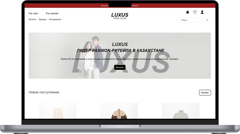Разработать интернет-магазин для бренда LUXUS, ориентированного на премиум-сегмент fashion-рынка в Казахстане. Основной акцент — создание визуально привлекательного и удобного для пользователя сайта с акцентом на стиль и минимализм.