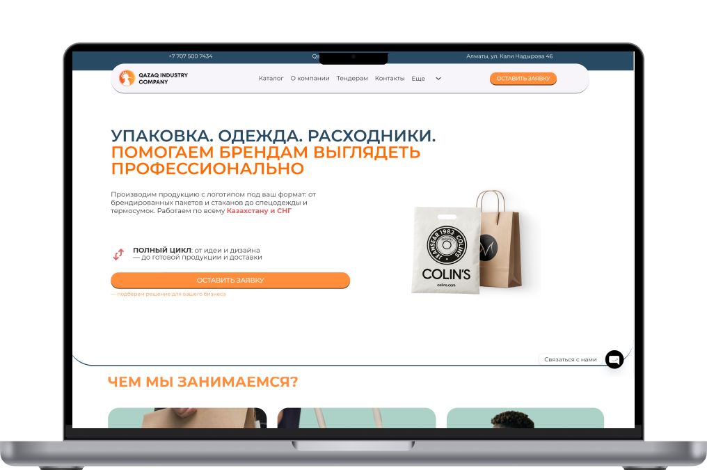 • Внедрена форма обратной связи и заявки с возможностью прикрепления ТЗ, логотипа или примера для запроса расчёта.